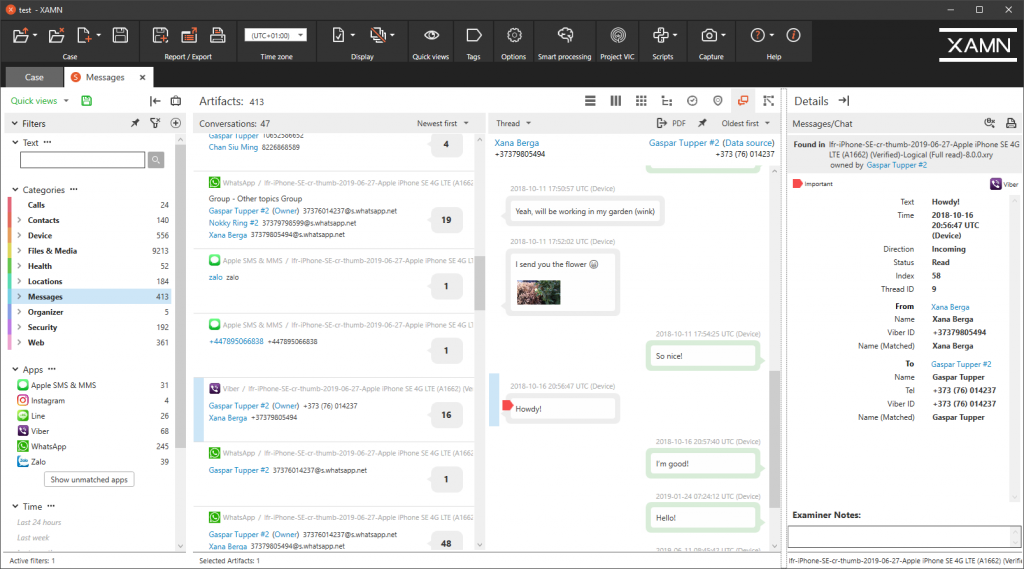 Una nueva vista de conversación: XAMN Horizon presenta una función de «Vista de conversación» plenamente renovada. De esta forma, podrá ver todos los artefactos de comunicación recogidos en la pantalla del teléfono y con tiempos de respuesta mucho más reducidos a medida que se desplaza por los conjuntos de datos.